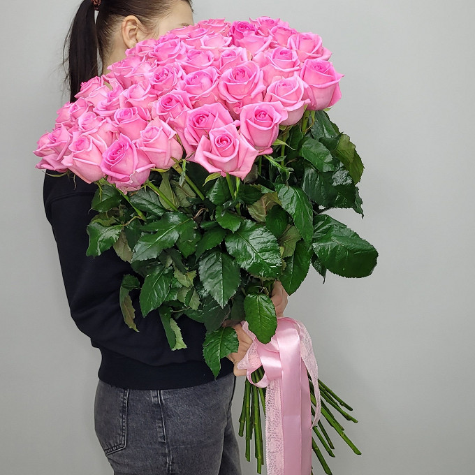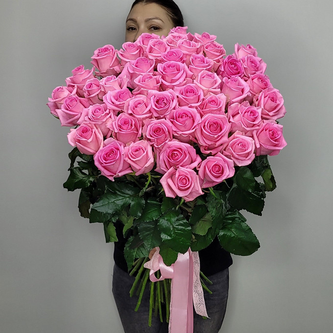 Роза эквадор (ярко-розовый) 80 см — 45, лента атласная — 2